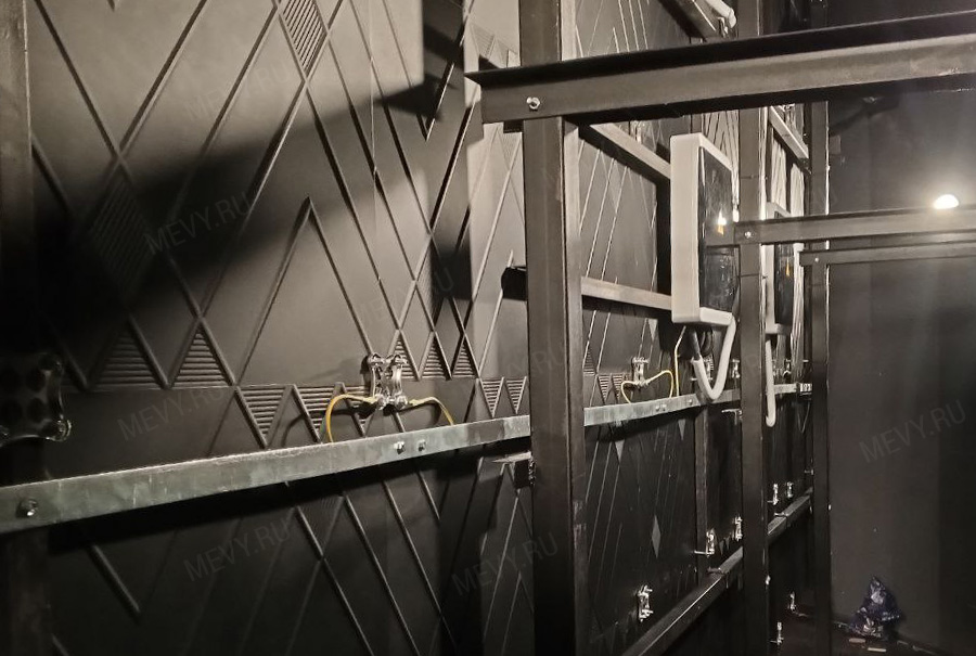 Интерьерные светодиодные экраны MEVY смонтированы на металлоконструкциях на стенах музейного комплекса города Саранск республики Мордовия. Один экран радиусный 4 х 2 метра выполнен в композитном корпусе. Остальные 2 выполнены в монолитной конструкции. Управление осуществляется по Wi-Fi.