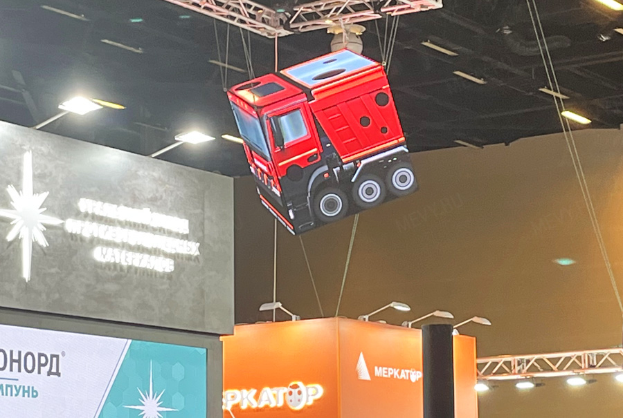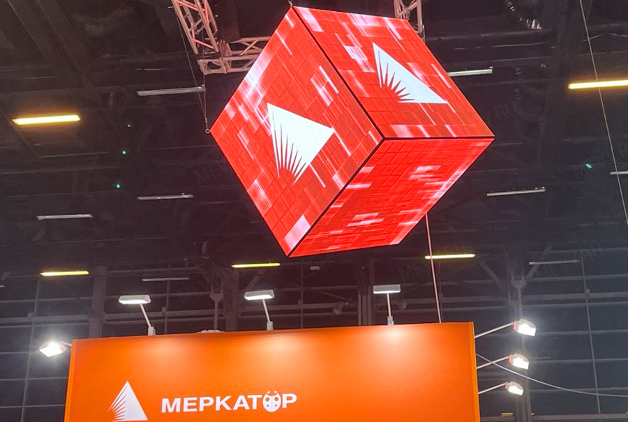 Наша компания в кратчайшие сроки реализовала интересный дизайнерский проект - светодиодный куб MEVY P3 RGB для производителя дорожной и коммунальной техники компании МЕРКАТОР. Большой куб монтируется над павильоном МЕРКАТОР на выставке в городе Минеральные воды, а затем перебазируется в головной офис компании. Видеоконтент создавал моушен-дизайнер Маскевич Антон. Усиленный корпус состоит из 2-х частей. Управление через WI-Fi. Площадь LED куба составляет 24 кв.м